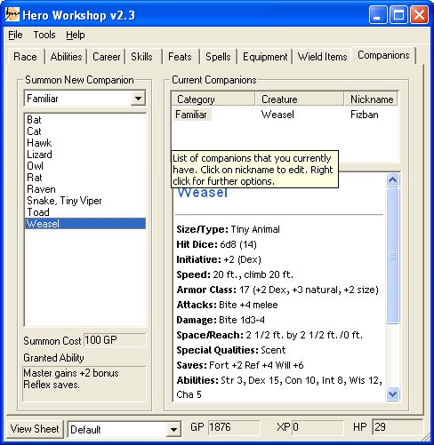Some classes can have creatures as faithful companions. For example, Sorcerers and Wizards can have a familiar, Druids and rangers can have an animal companion and Paladins have a special mount. Note: You can add custom creatures by editing an XML file.
