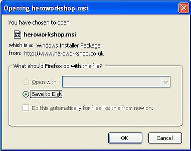2. When the opening heroworkshop.msi dialog box appears select the Save to Disk option and then click OK.
